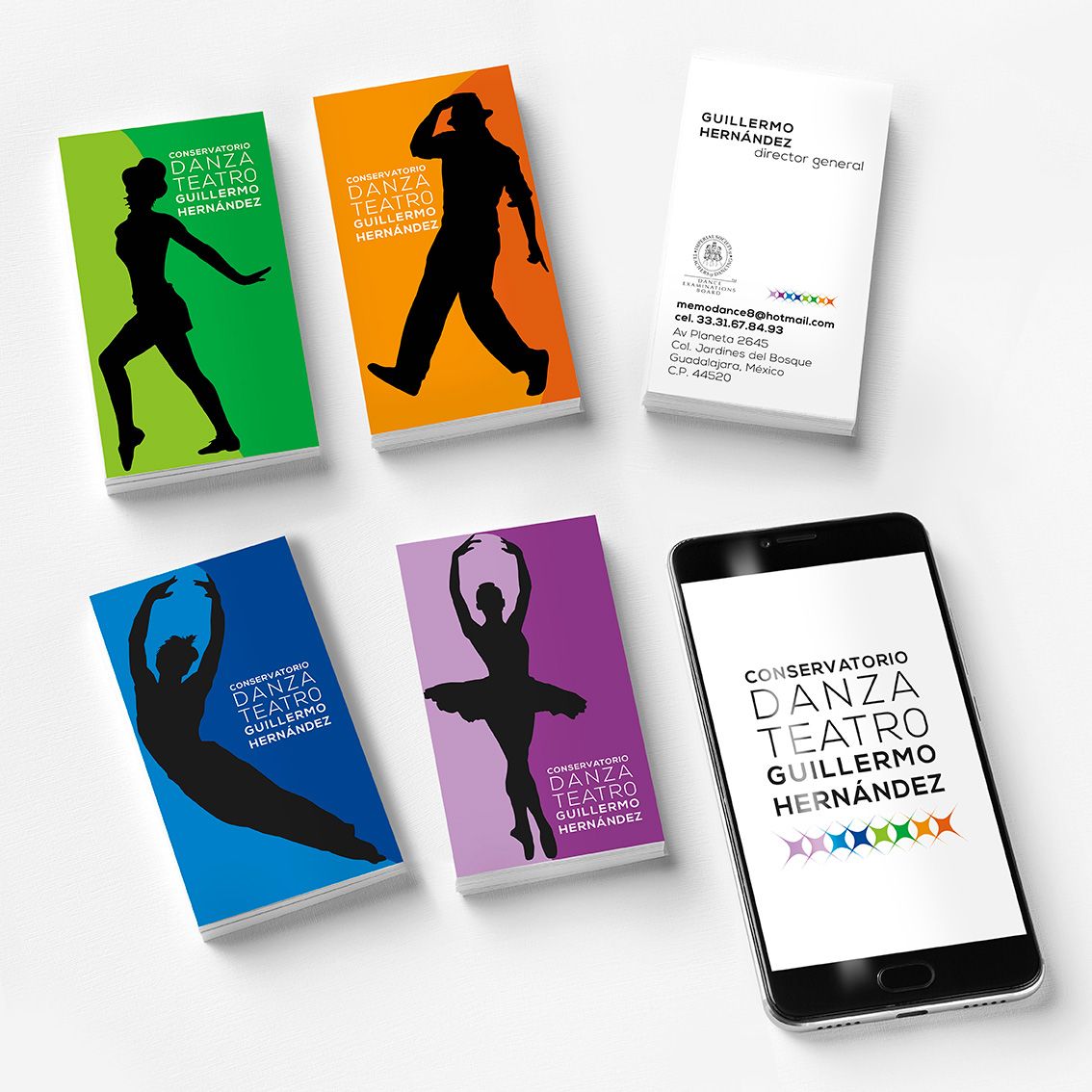 El nombre Guillermo Hernández, habla por si mismo. El mundo de la danza reconoce a este destacado artista, bailarín y maestro, como uno de los mejores en México. El logotipo se enfoca en el peso y presencia de su nombre, así como la estructura, disciplina y profesionalismo. El escenario se ilumina con los reflectores de colores, representando la alegría y diversidad que se obtiene con la danza.