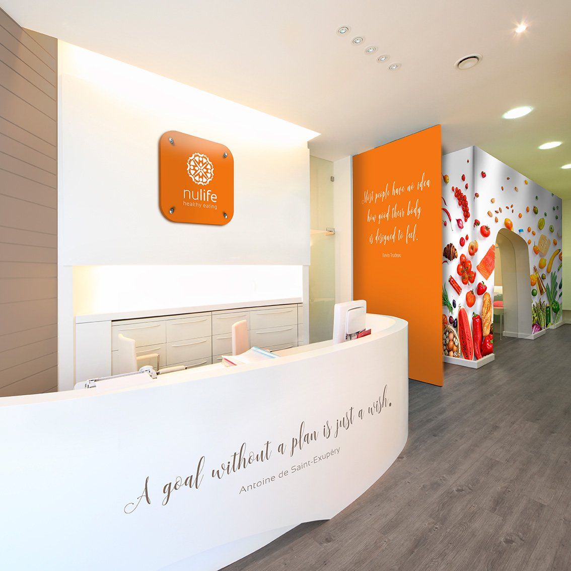 Mediante un plan personalizado, se enseña al paciente los beneficios de una adecuada alimentación para una mejor calidad de vida. El hombre de Vitruvio, es un estudio detallado que expone las proporciones anatómicas ideales del hombre y ha servido como inspiración para diseñar abstractamente este logotipo. La figura principal es rodeada de elementos que representan frutas, verduras, cereales y proteínas de forma proporcionada y simétrica. La marca se maneja en dos estilos de letra para resaltar y separar los dos conceptos que componen el nombre.